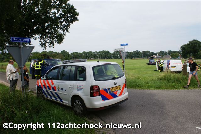 De bestuurder van een personenauto wilde vanaf de Toldijk de Kapelweg oversteken. Daarbij zag de man een busje dat over de Kapelweg reed over het hoofd. De bestuurder bleek net als twee kinderen die in de auto zaten ongedeerd. Een vrouwelijke passagier werd voor controle per ambulance naar het ziekenhuis overgebracht. De bestuurder van het bedrijfsbusje raakte lichtgewond. Hij kon ter plaatse door het ambulancepersoneel worden behandeld. De wagens moesten worden afgesleept.
