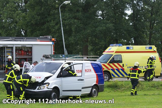 SILVOLDE – Op de kruising Kapelweg met de Toldijk in Silvolde heeft maandagmiddag een aanrijding tussen een personenauto en een bedrijfsbusje plaatsgevonden. Twee mensen raakte gewond.