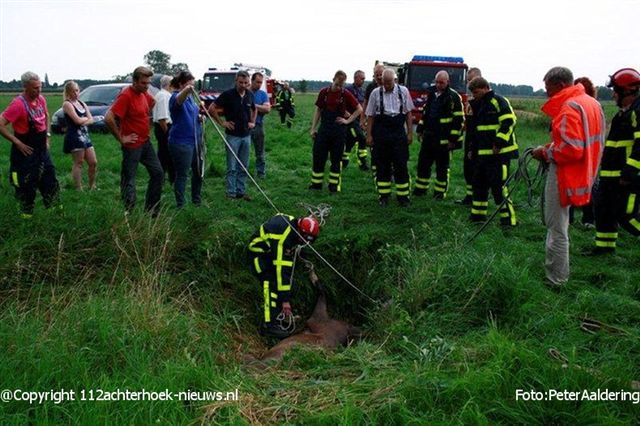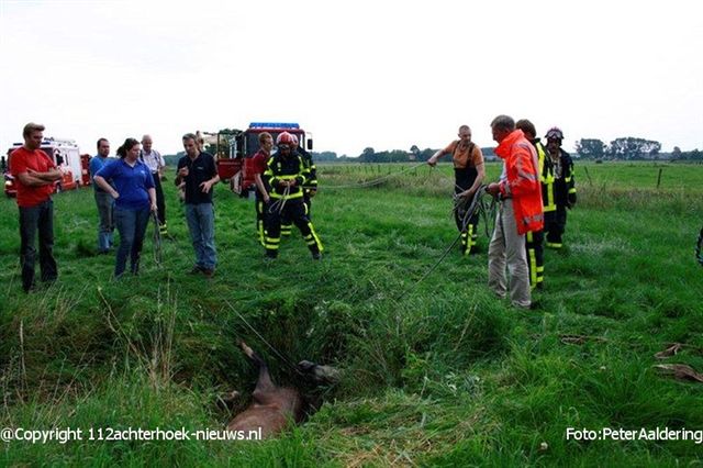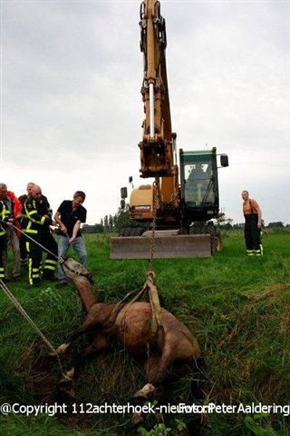 Twee meisjes waren hun pony aan het borstelen toen de pony ergens van schrok en op het lopen zette waar naar de pony in de sloot terecht was gekomen. De brandweer kon het dier niet zo gemakkelijk uit de sloot krijgen en dankzij een kraan werd de klus gemakkelijk gemaakt. De pony heeft aan dit avontuur niets aan overgehouden.